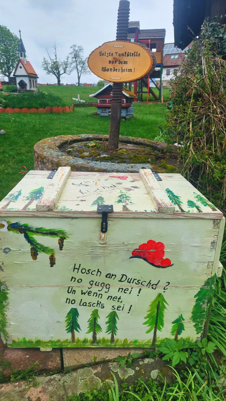 Der Weg führte bergauf zum Georgenäum, einem im französischen Spätbarockstil erbauten Profanbau, dessen Räume heute den Aurelius-Sängerknaben für Proben und Veranstaltungen dienen. Durch den neu gestalteten Calwer Stadtgarten ging es steil hinauf zum Gimpelstein, von wo aus man einen schönen Rundblick über Calw genießen konnte. Auf dem zertifizierten „Schwarzwälder Genießerpfad“ erreichten die Wanderer das Schafott, auf dem bis zum Jahr 1818 Calwer Übeltäter ihr Leben lassen mussten.