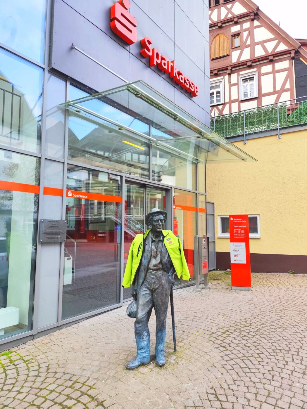Trotz Dauer-Nieselregens starteten 28 Wanderfreunde/innen des Schwarzwaldvereins Pforzheim-Brötzingen am 12. April mit der Bahn nach Calw. Start der Wanderung war am Denkmal des berühmtesten Sohnes der Stadt, Hermann Hesse, über dessen Leben Adi Pfau, der zusammen mit Maria Haß und Kathrin Kulozik die Wanderung führte, nach der Begrüßung der Wanderer kurz informierte.