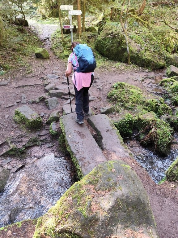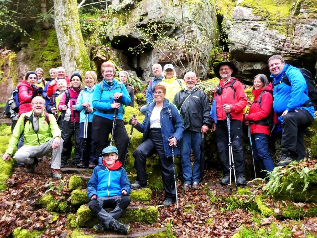 Angenehme Waldwege führten die Gruppe zum ersten Highlight der Tour: Über Stock und Stein ging es hinab in die Rötelbachschlucht. Auf schmalen, felsigen Wurzelpfaden führte der Weg entlang des gluckernden Baches mit üppig bemoosten Steinen zum nächsten Höhepunkt des Tages: Es galt, den atemberaubenden Stubenfelsen zu erklimmen! Trittsicherheit und Schwindelfreiheit wurden hier den Wanderern abverlangt.