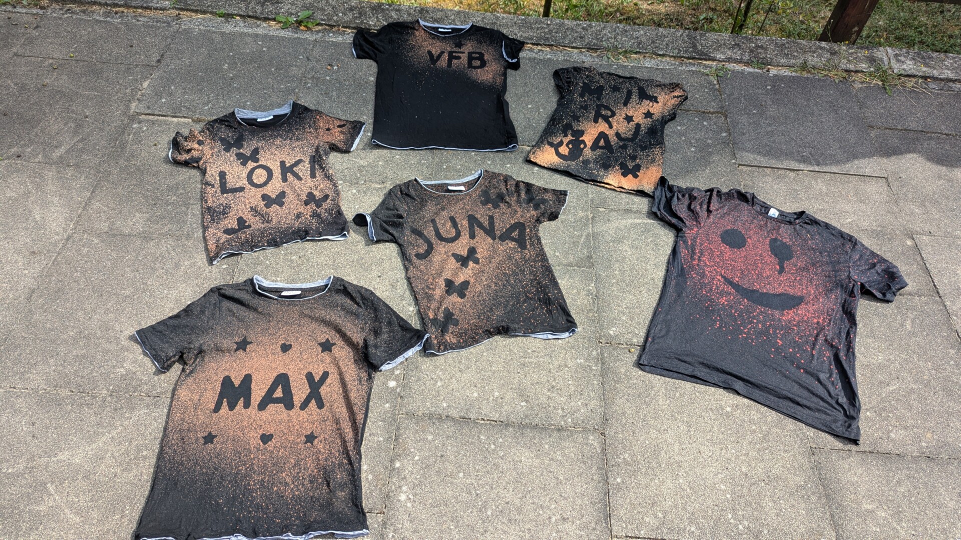 Das Färben von T-Shirts fand großen Anspruch. Der eigene Namen auf dem schwarzen T-Shirt war dabei immer das Wichtigste. Da das Wetter mit angenehmen Temperaturen glänzte waren Spritzpistolen und die Wasserrutsche stark gefragt.