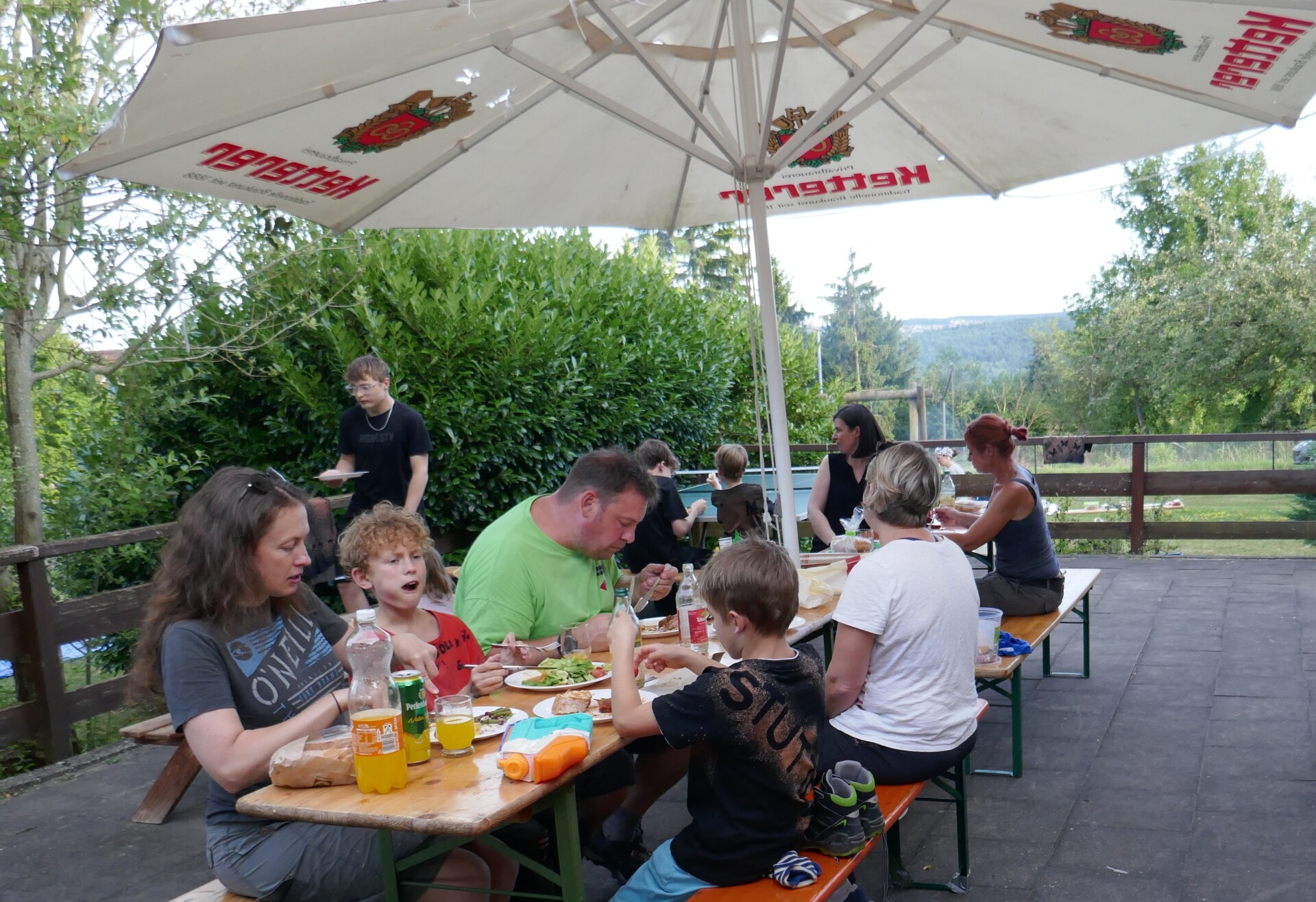 Mit Kaleria Brunner ging ein Teil anschließend auf eine interessante Wanderung durch die vielen von uns unbekannten Bereiche vom Arlinger. Der Höhepunkt war der Ausblick vom Wallberg. Wie bereits an interessanten Punkten im Arlinger, gab es hier von einer hier wohnenden Mitwanderin interessante Erklärungen zu diesem Berg. Vor dem zweiten Weltkrieg hatte er eine Höhe von 378 m. Durch die Aufschüttungen mit Trümmerschutt wuchs er bis 1965 um 40 m. Kaum bekannt ist auch, dass vom 15. bis ins 19. Jahrhundert am Südhang des Berges Weinbau betrieben wurde. Nach dem Genuss der tollen Aussicht über die Stadt trat man den Rückweg an. Hier machten wir nochmals an der Pyramide, dem Ehrenmal für die in beiden Weltkriegen umgekommenen Vereinsmitglieder, eine kurze Rast bevor wir dann mit ausreichend Hunger wieder im Vereinsgarten eintrafen. Die Rauchschwaden kündigten bereits an, dass der Grill schon angeheizt wurde. Jeder ließ sich das mitgebrachte Grillgut schmecken. Gegen 21 Uhr brachen die meisten dann den Heimweg an. Ein Teil der Familiengruppe übernachte aber anschließend hier und genoss den Abschluss des schönen Tages am Lagerfeuer.