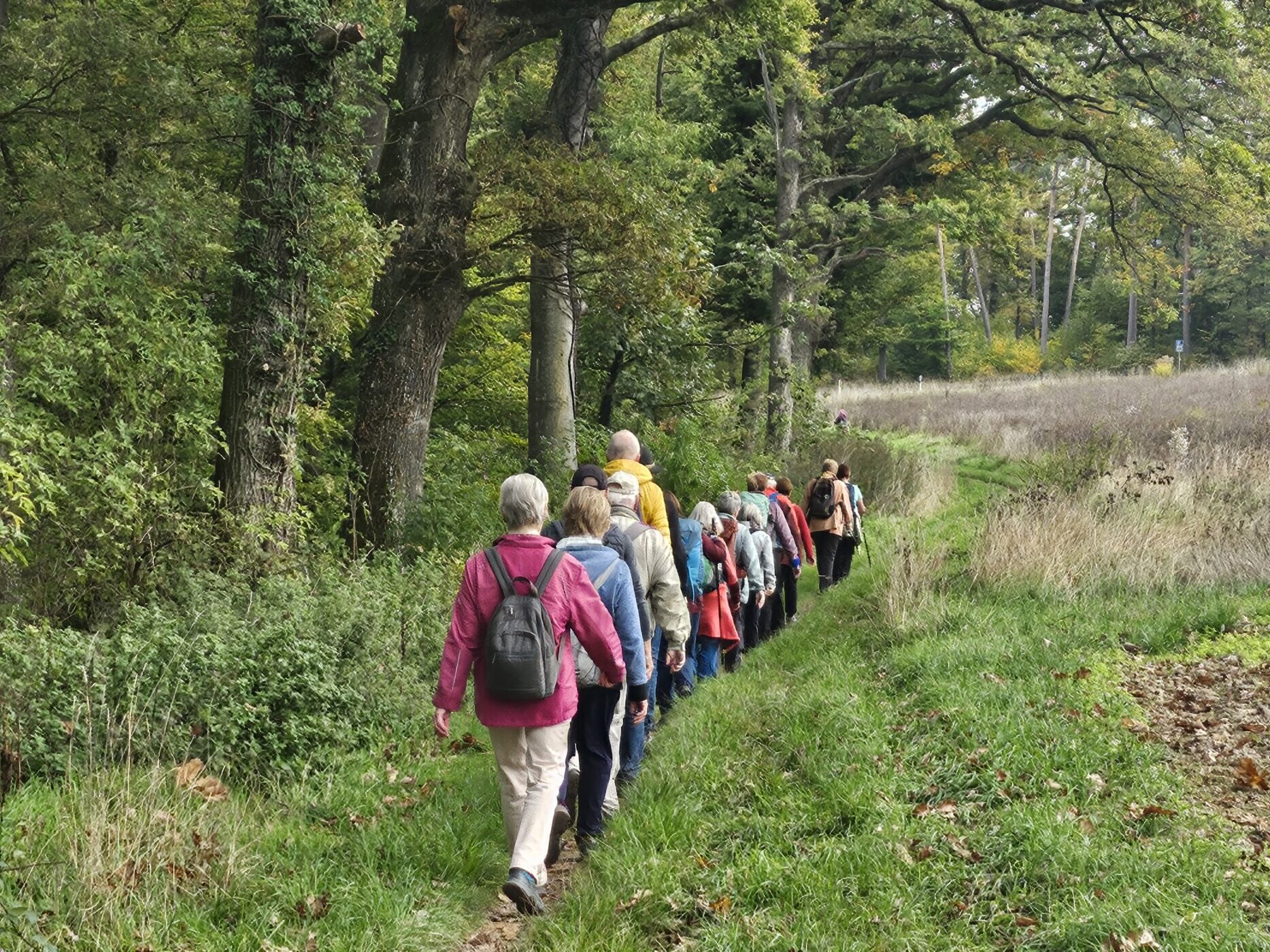 Zeitig am Sonntag starteten die 17 Teilnehmer der Langwandergruppe mit ihren Wanderführer/in Jürgen und Sabine Holzinger in Richtung Stromberg-Heuchelberg. Die ersten beiden Züge waren auch pünktlich, doch dann standen wir 40 Minuten beim Zementwerk in Wössingen aufgrund einer Stellwerkstörung. In Bretten durfte die Gruppe dann noch flotten Schrittes in einen abfahrbereiten schnelleren Zug wechseln um die Verspätung zu reduzieren. Unseren Startpunkt in Stetten am Heuchelberg erreichten wir so fast eine Stunde später als geplant.