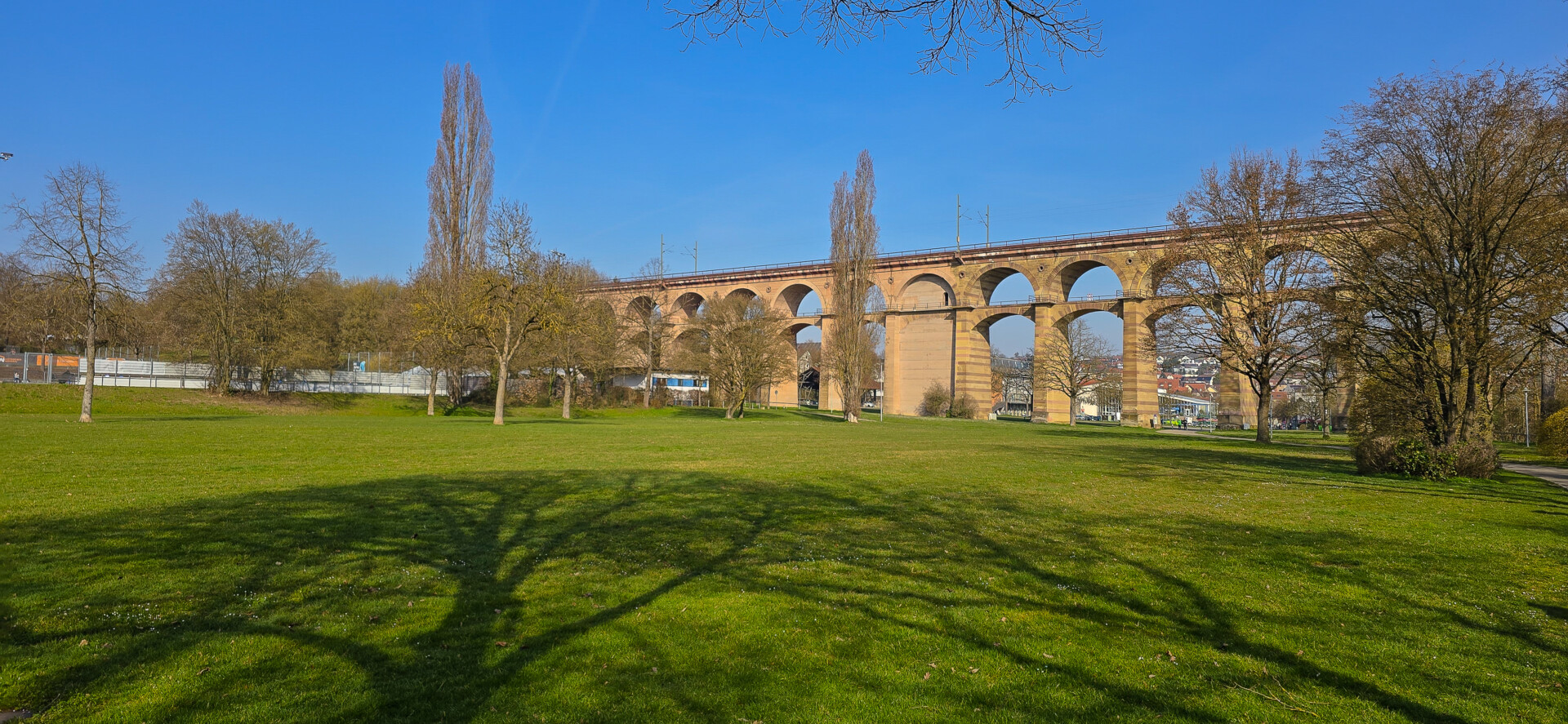 Die Kurzwanderer hatten zuerst den Ortskern von Besigheim genauer besichtigt und wanderten dann immer der Enz entlang zurück nach Bietigheim. Hier stand genug Zeit zur Verfügung, ein Eis zu essen und die Sehenswürdigkeiten anzuschauen. In der Ferne konnte das Eisenbahnviadukt von 1853 bestaunt werden das hier in einer Höhe von 33 m die Enz überspannt.