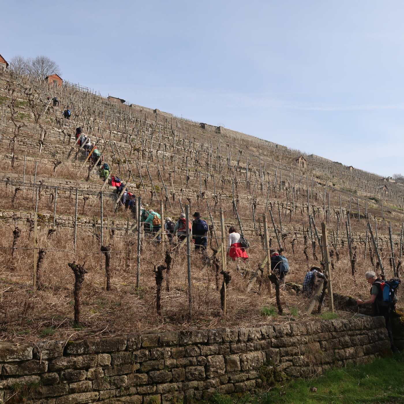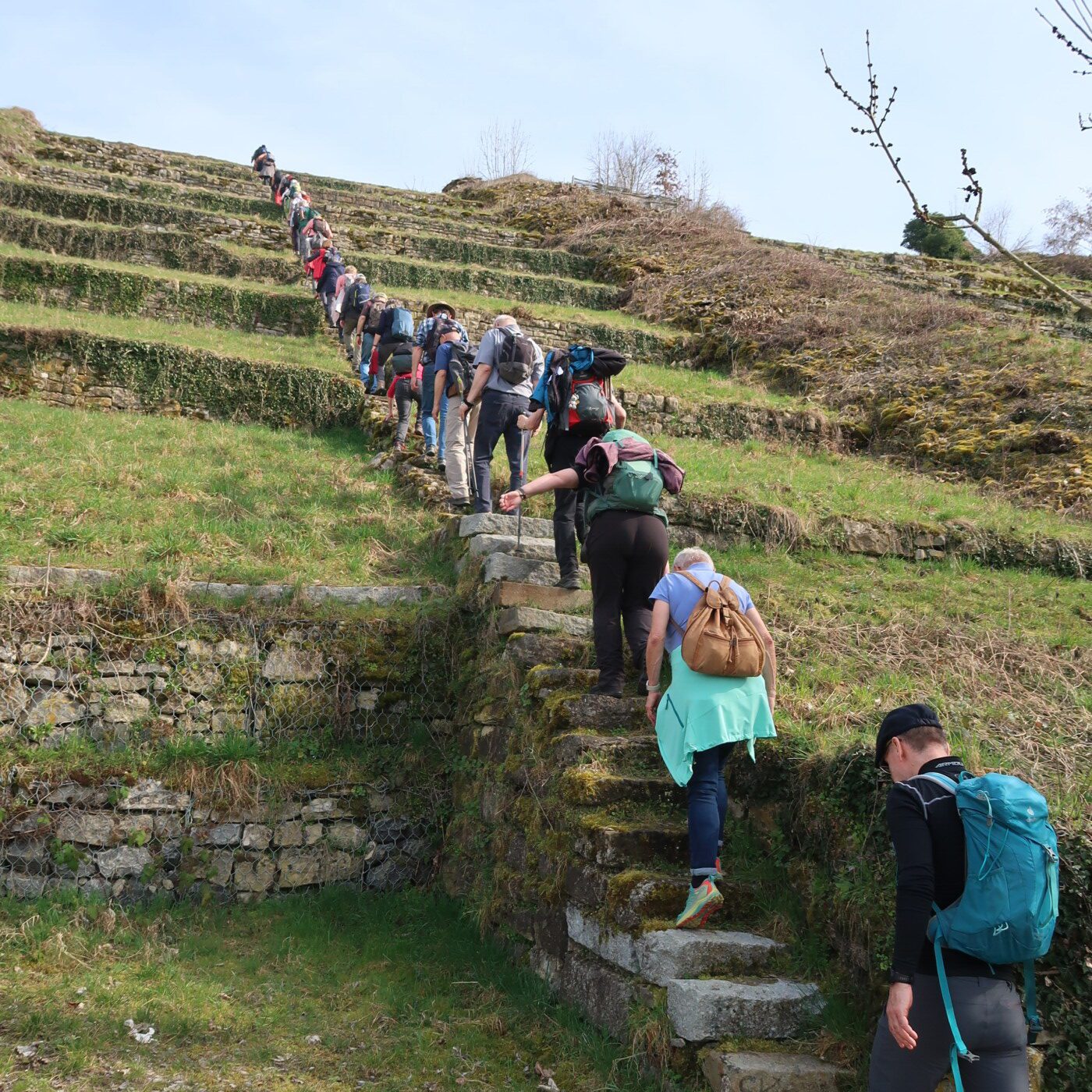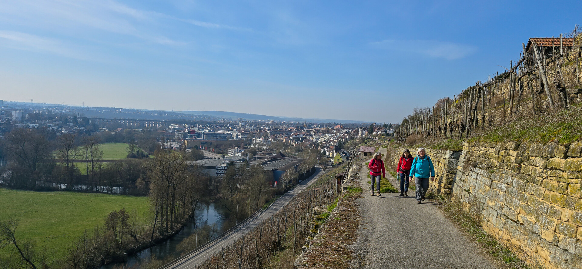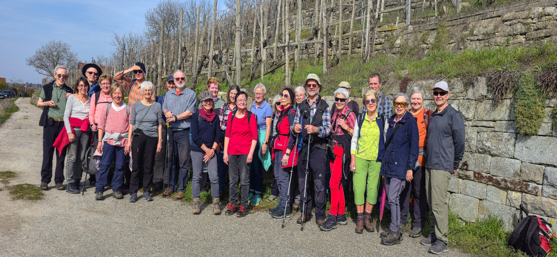 Der Schwarzwaldverein Pforzheim-Brötzingen startete am Sonntag den 08.03.2026 bei bestem Wanderwetter mit 47 Wanderinnen und Wanderer per Bahn nach Bietigheim-Bissingen, wo die Rundwanderung der 28 Langwanderer begann. Die Kurzwanderer fuhren weiter mit dem Schienenersatzverkehr nach Besigheim. Die Langwanderer marschierten zunächst durch das ehemalige Gartenschaugelände Richtung Besigheim. Anschließend gings auf dem Höhenweg durch die Weinberge links oberhalb der Enz und dann durch Wald und Baumwiesen in den Enzseitentälern bis zum Mittagsrastplatz oberhalb der Weinberge von Besigheim. Hier hatte man einen herrlichen Blick auf Besigheim und in Richtung Enz- und Neckartal. Der Weg war immer wieder gesäumt von Osterglocken und anderen Frühjahrsblühern. Nach kurzem Abstieg kam man an die Enz unterhalb der Besigheimer Altstadt (Startpunkt der Kurzwanderer). Der Weg führte dann über die Enz und mit kräftigem Anstieg in die Ortsmitte von Besigheim mit Rathaus, Marktplatz und entlang der Kirchstraße mit wunderschönen Fachwerkhäusern zum Ende der mittelalterlichen Stadtbefestigung. Über Stufen gings abermals ins Tal. Am rechten Enzufer führte der Weg sodann wieder in Richtung Bietigheim-Bissingen. Für sportliche Einlagen und etwas Schweiß sorgten zwei Aufstiege über Weinbergtreppen bis auf die Hochebene beim Husarenhof. Danach gings gemächlich über Naturwege durch den Bietigheimer Forst, mit „fürstlichem“ Ausblick ins Enztal, überall gesäumt von Szilla (Blaustern) und weiteren Frühlingsblumen. Der Endspurt führte dann durch Bietigheim zur Schlusseinkehr ins Ellental-Restaurant wo man wieder auf die Kurzwanderer traf.
